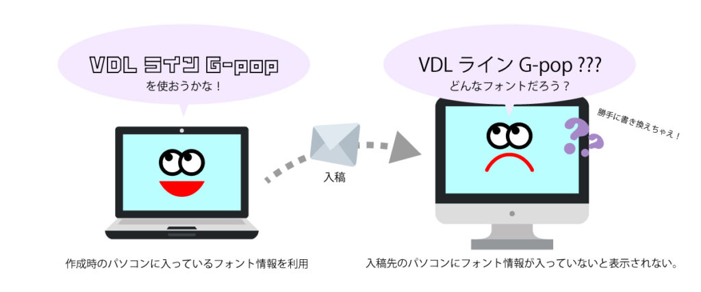 しかし、制作会社側のパソコンに同じフォントが入っていないと、