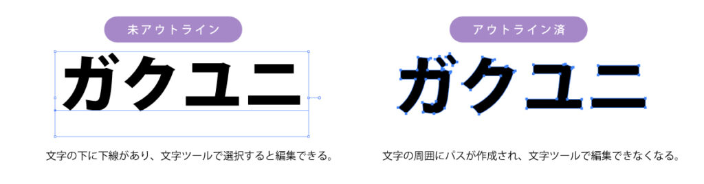 アウトライン化とは、文字データを“図形データ(オブジェクト)”に変換することです。