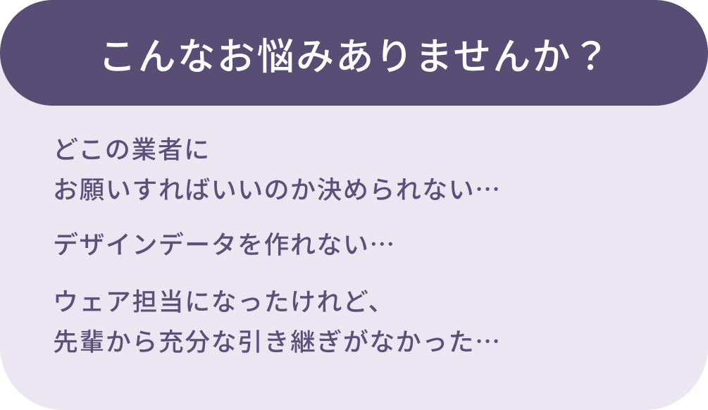 幅広い世代や団体向けにオリジナルウェアの制作・販売を行っています。