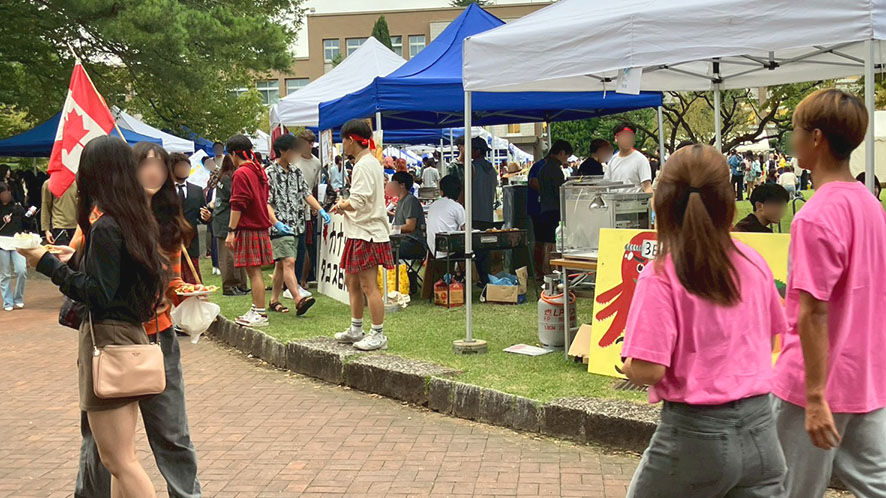 芝生の上で世界の料理を味わい、留学生と笑いながら言葉を学ぶ時間は、この大学祭の特別さを強く感じさせてくれます。