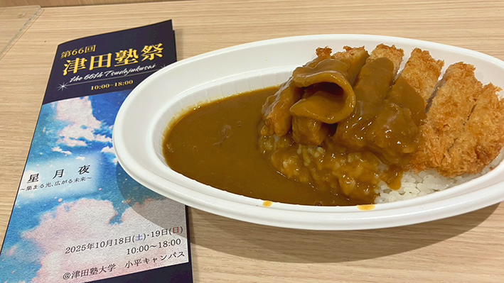 また、学内の学食も開放されており、カレー・カツカレー・チーズカレーというカレー好きには嬉しいラインナップ。カツカレーを選んで食べてみたところ、とても美味しく、個人的にも印象に残っています!