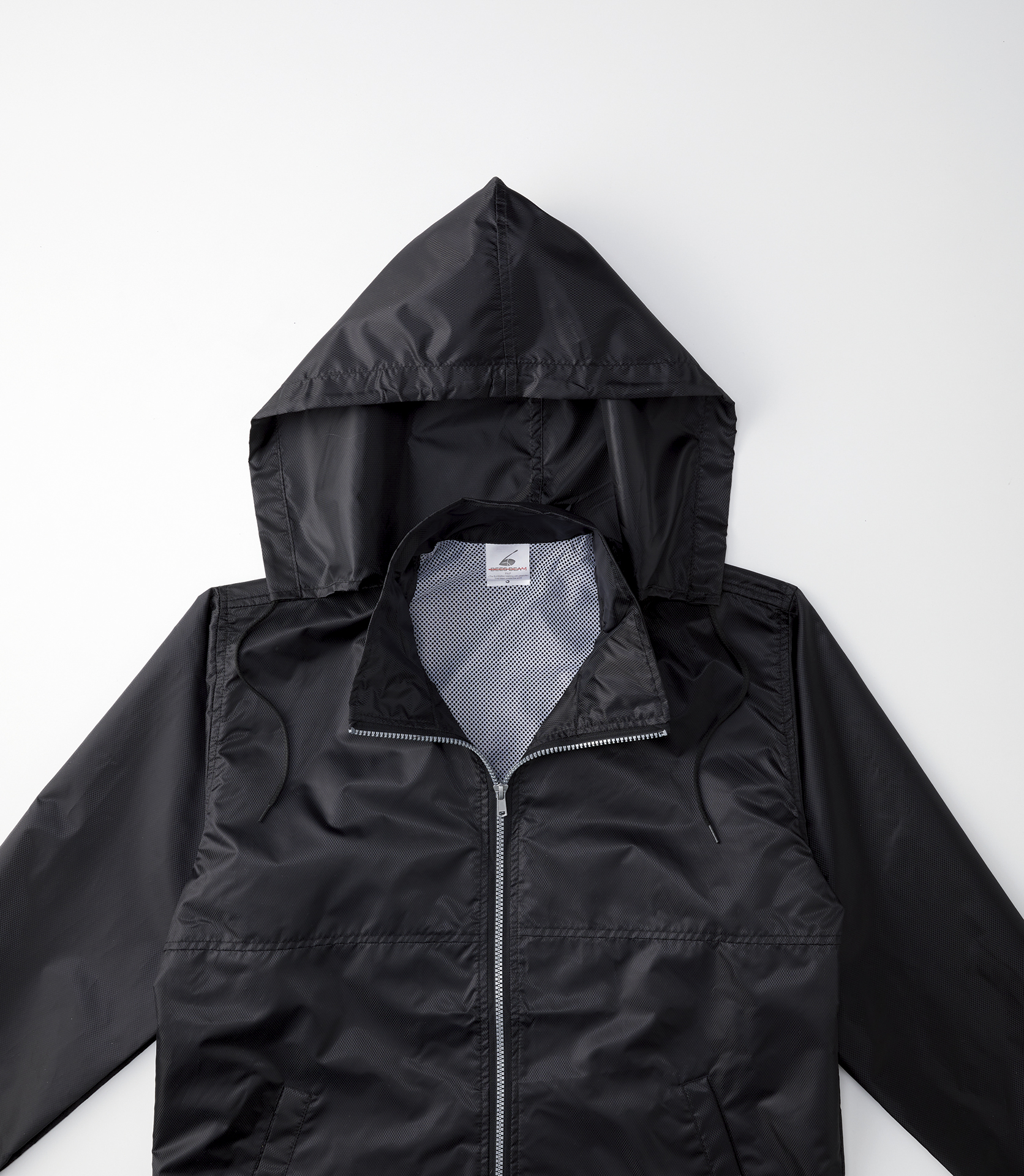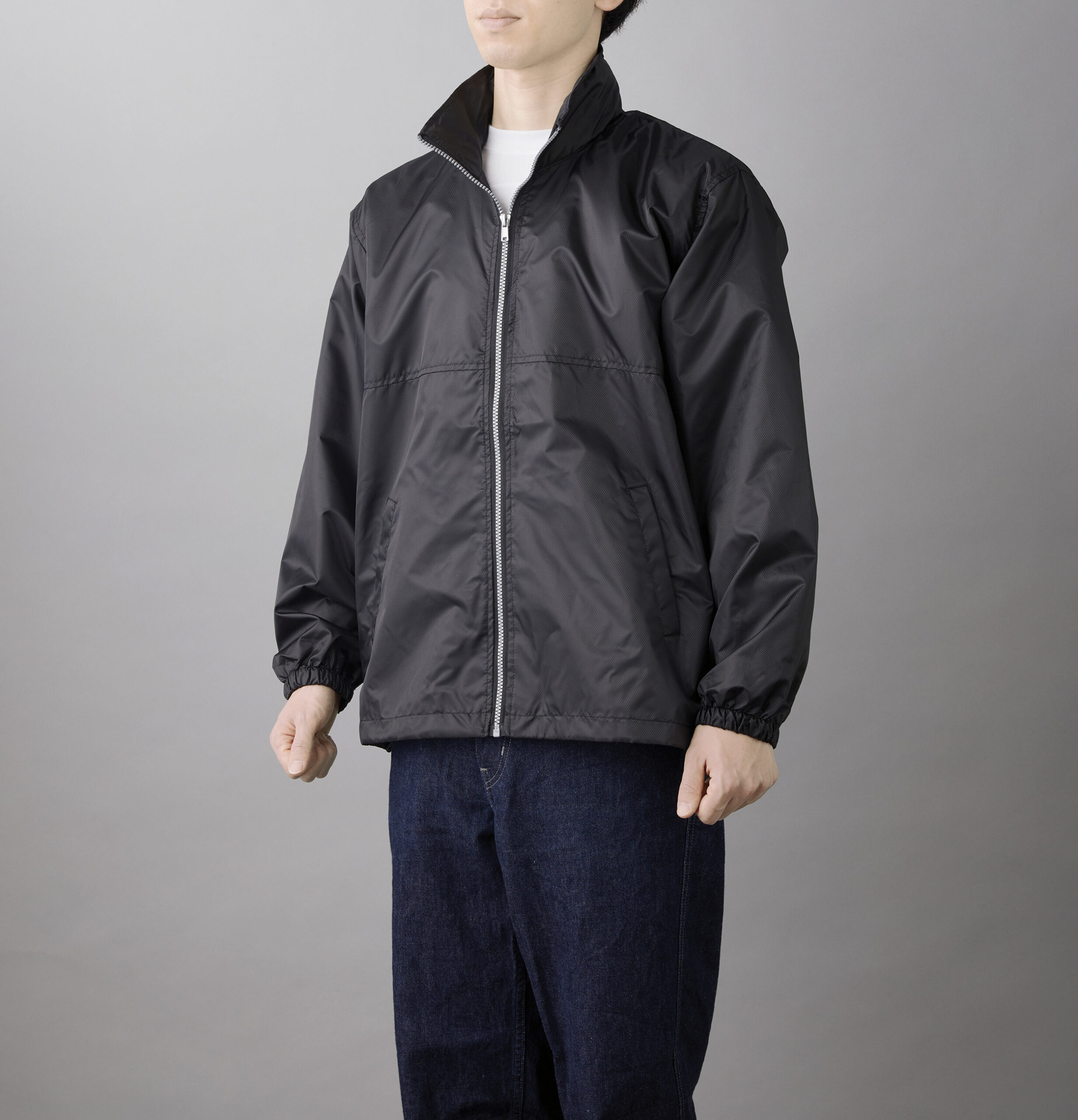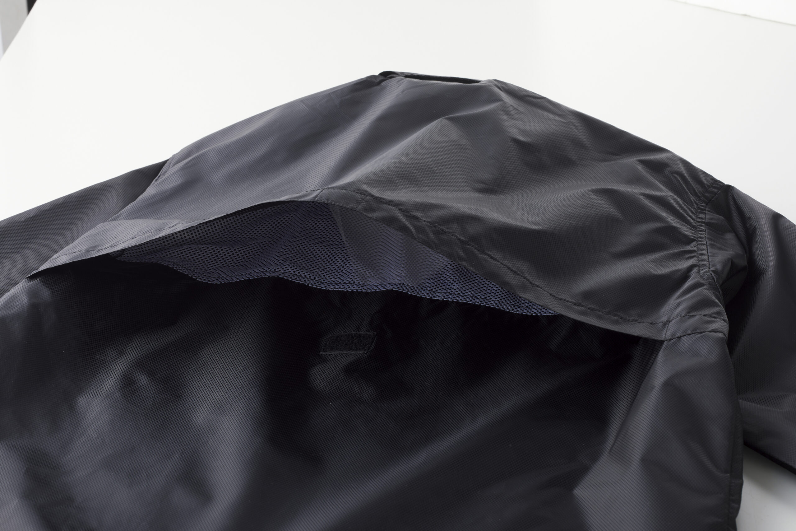 襟にはフードも収納されており、突然の雨風にも対応できます。
